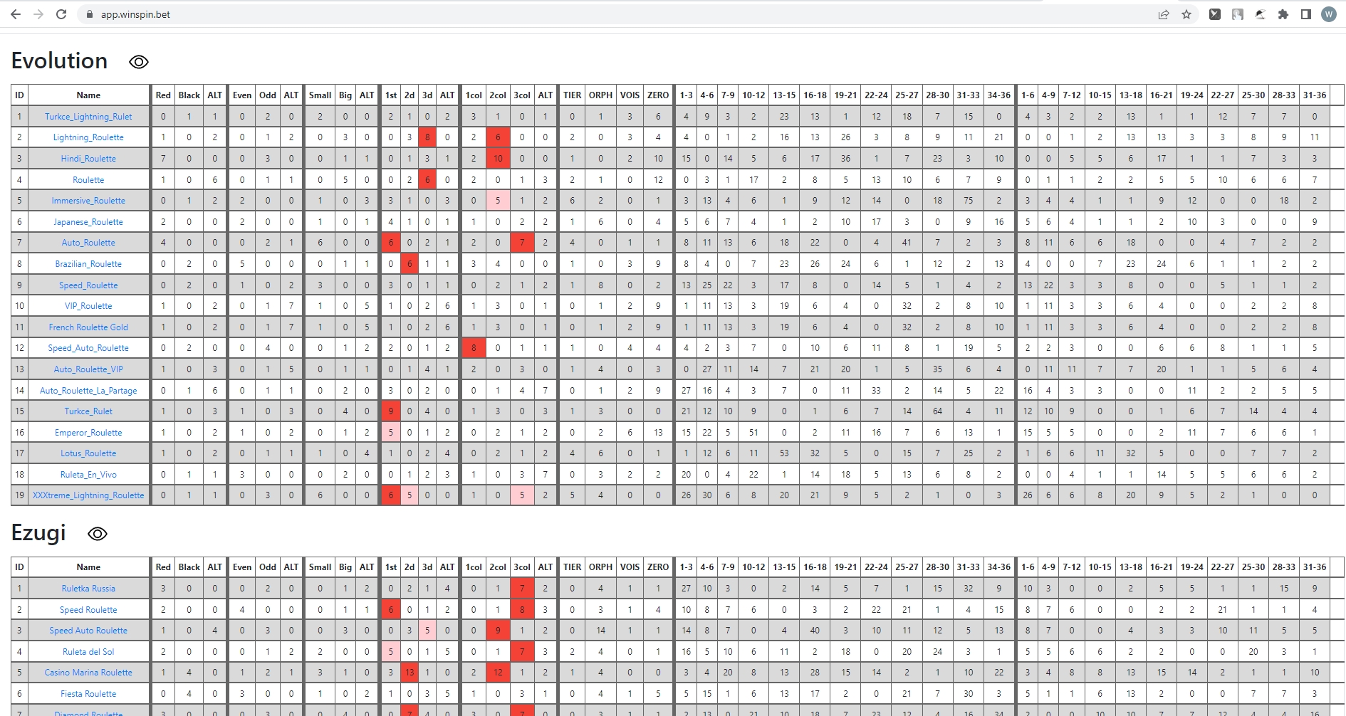 Web service for real-time roulette analysis from Evolution, Ezugi, Progmatic